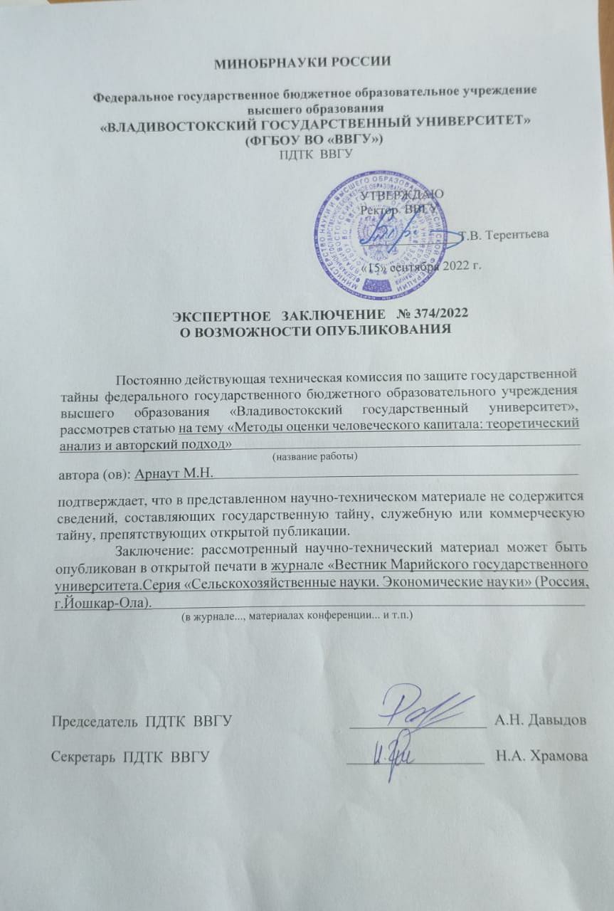 Методы оценки человеческого капитала: теоретический анализ и авторский подход