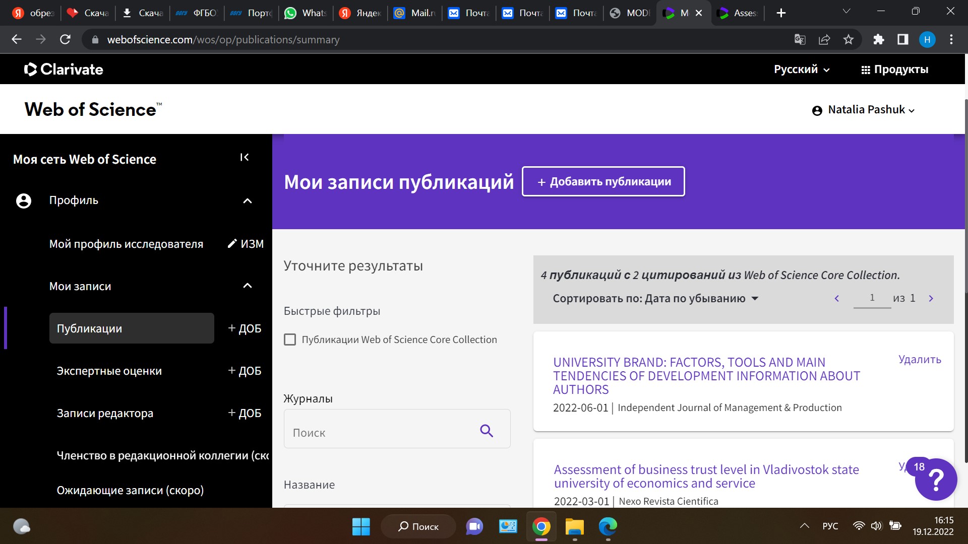 Assessment of business trust level in Vladivostok state university of economics and service