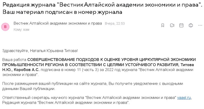 СОВЕРШЕНСТВОВАНИЕ ПОДХОДОВ К ОЦЕНКЕ УРОВНЯ ЦИРКУЛЯРНОЙ ЭКОНОМИКИ ПРОМЫШЛЕННОСТИ РЕГИОНА В СООТВЕТСТВИИ С ЦЕЛЯМИ УСТОЙЧИВОГО РАЗВИТИЯ