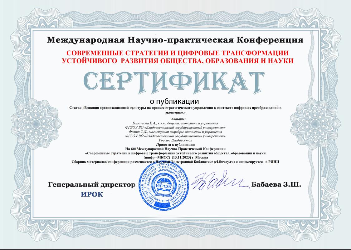 Влияние организационной культуры на процесс стратегического управления в контексте цифровых преобразований в экономике