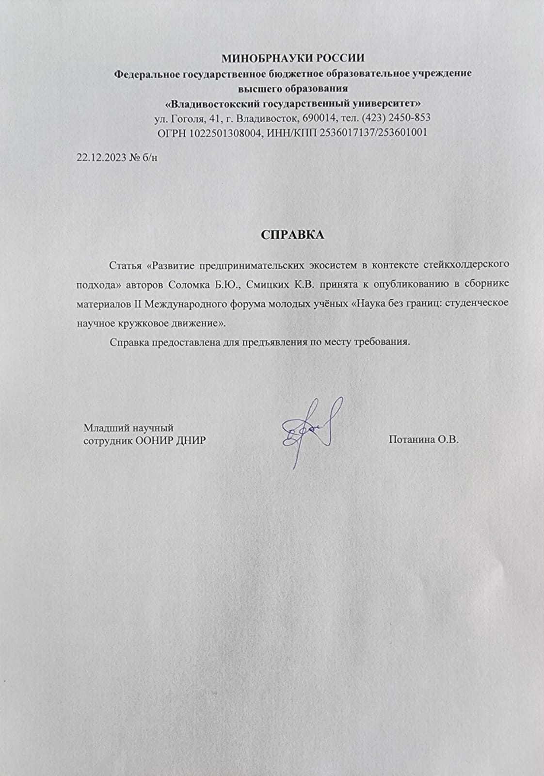 РАЗВИТИЕ ПРЕДПРИНИМАТЕЛЬСКИХ ЭКОСИСТЕМ В КОНТЕКСТЕ СТЕЙКХОЛДЕРСКОГО ПОДХОДА