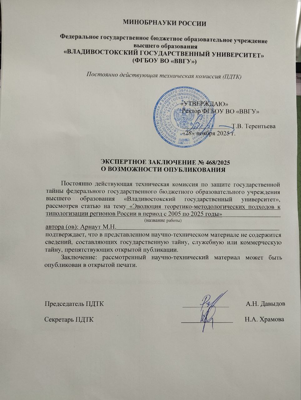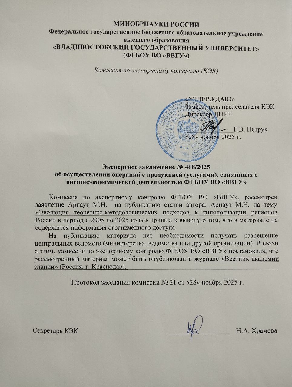 Эволюция теоретико-методологических подходов к типологизации регионов России в период с 2005 по 2025 годы