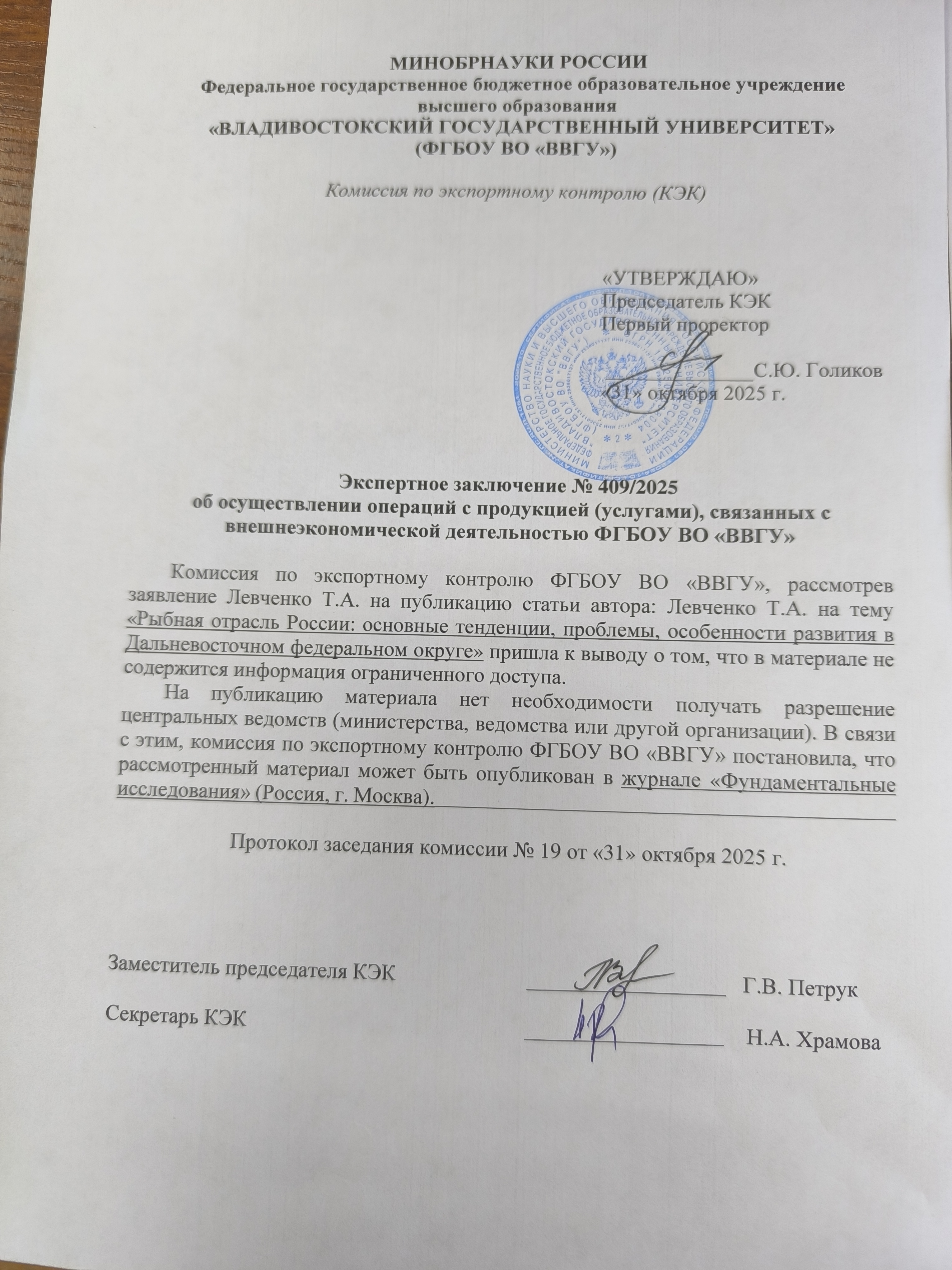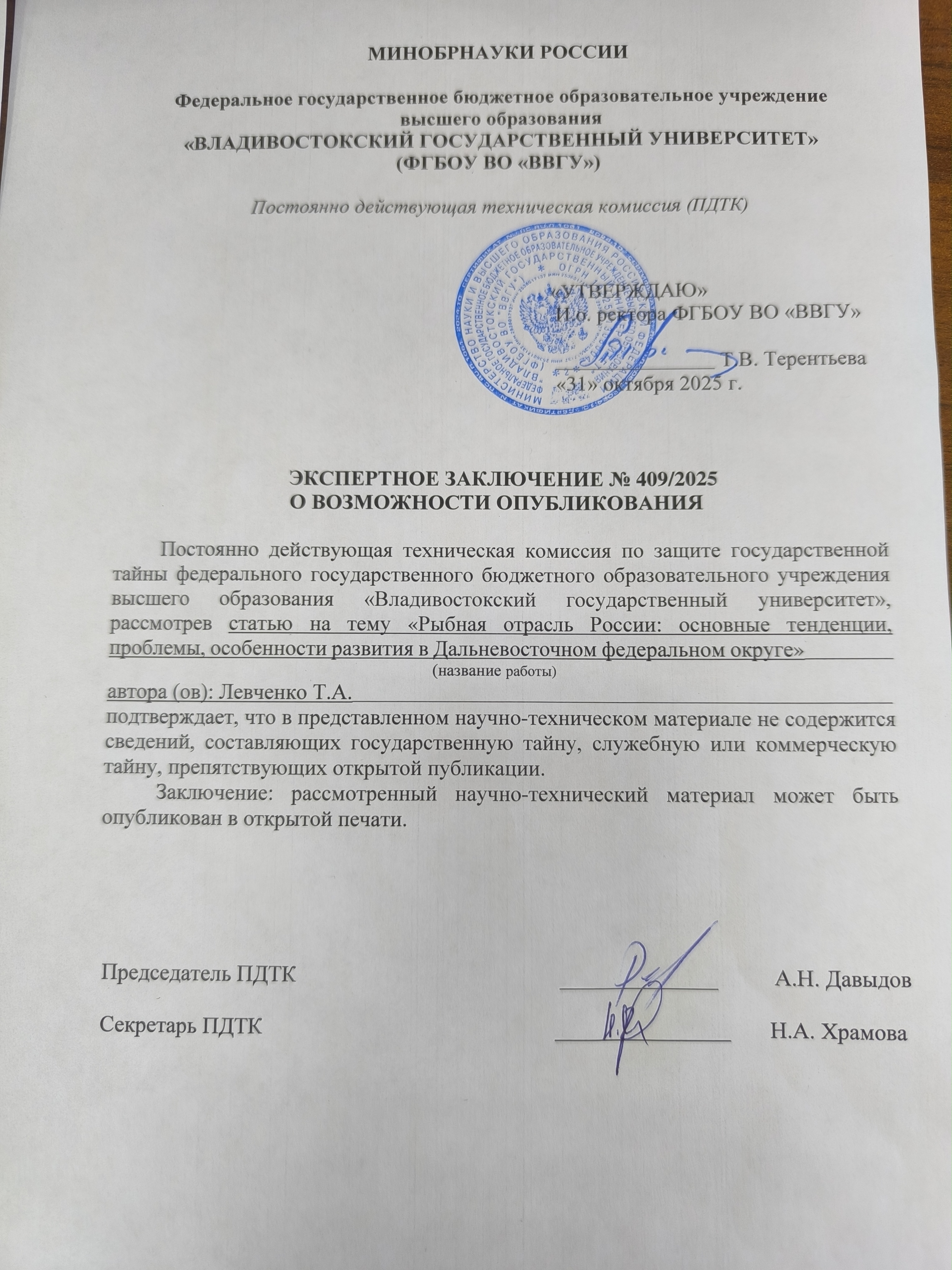 Рыбная отрасль России: основные тенденции, проблемы, особенности развития в Дальневосточном федеральном округе