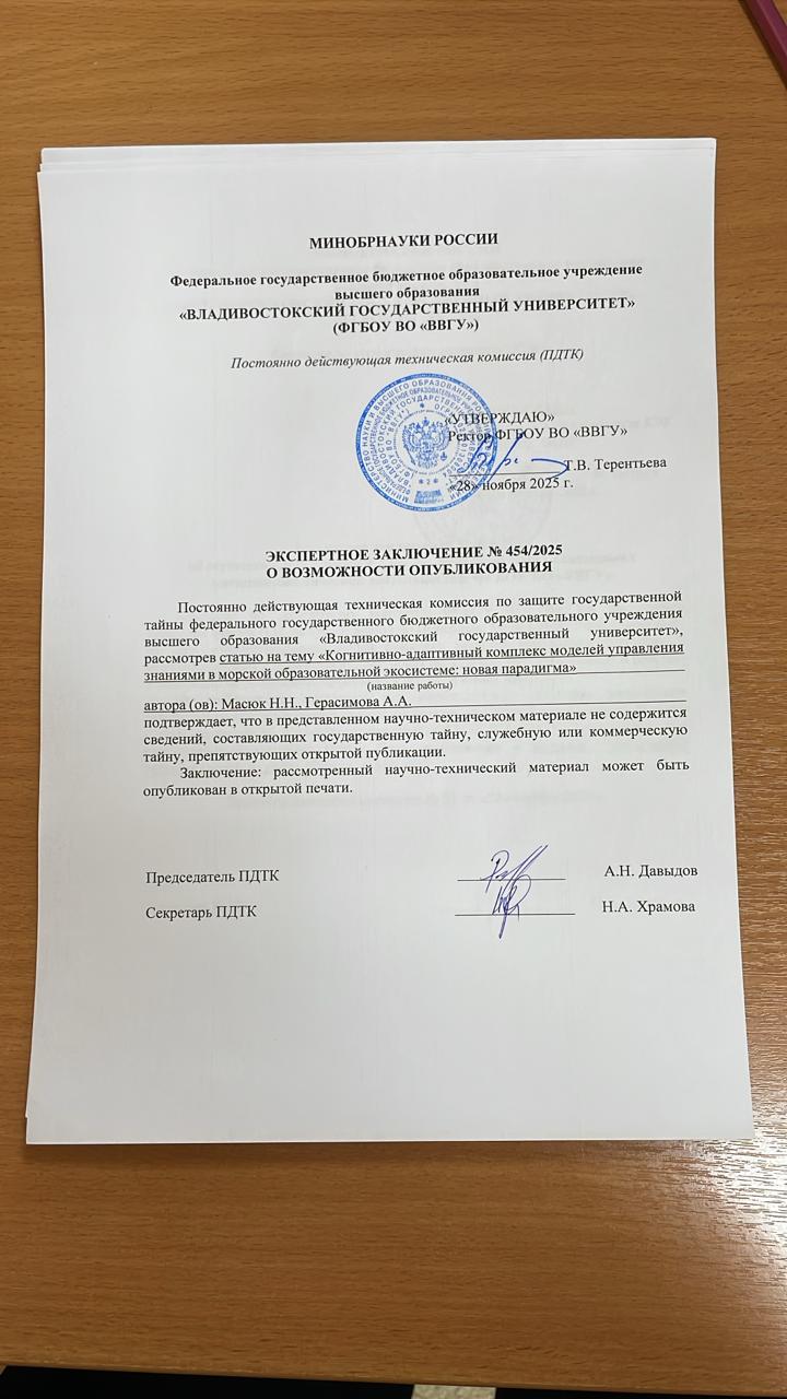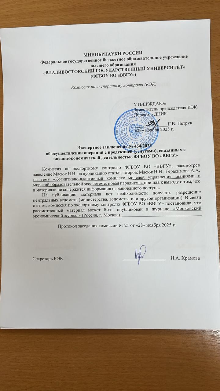 Когнитивно-адаптивный комплекс моделей управления знаниями в морской образовательной экосистеме: новая парадигма