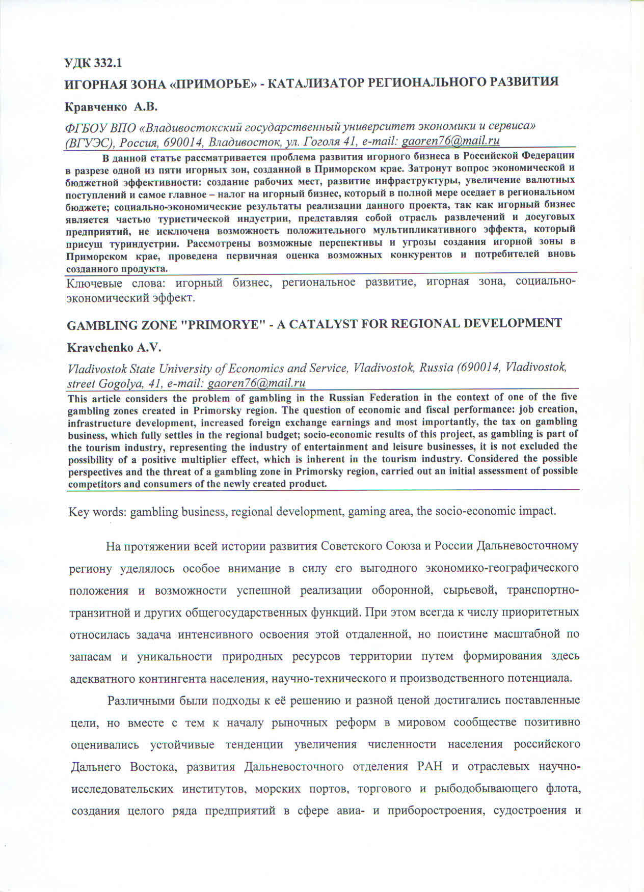 Игорная зона "Приморье" - катализатор регионального развития