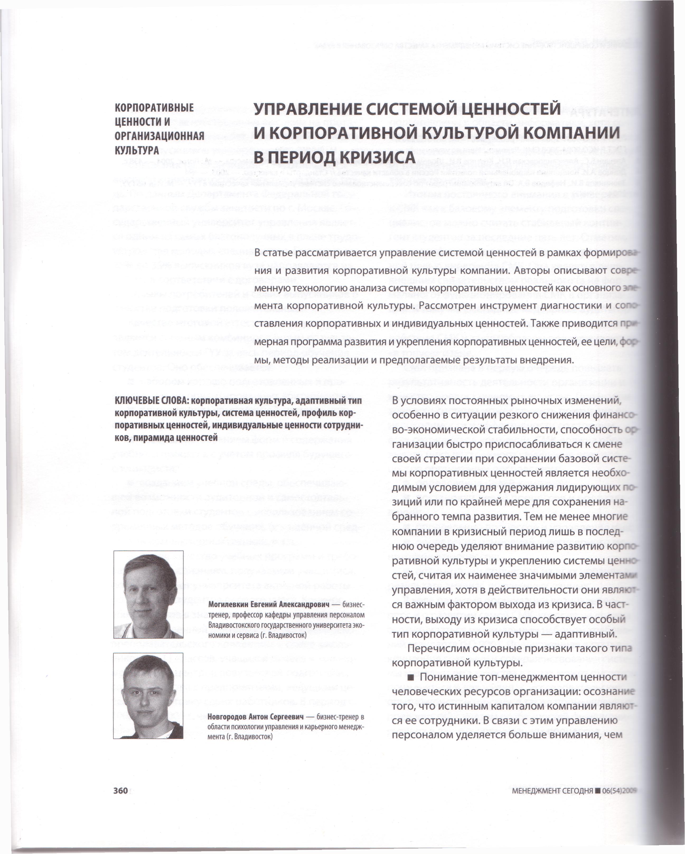 Управление системой ценностей и корпоративной культурой компании в период кризиса