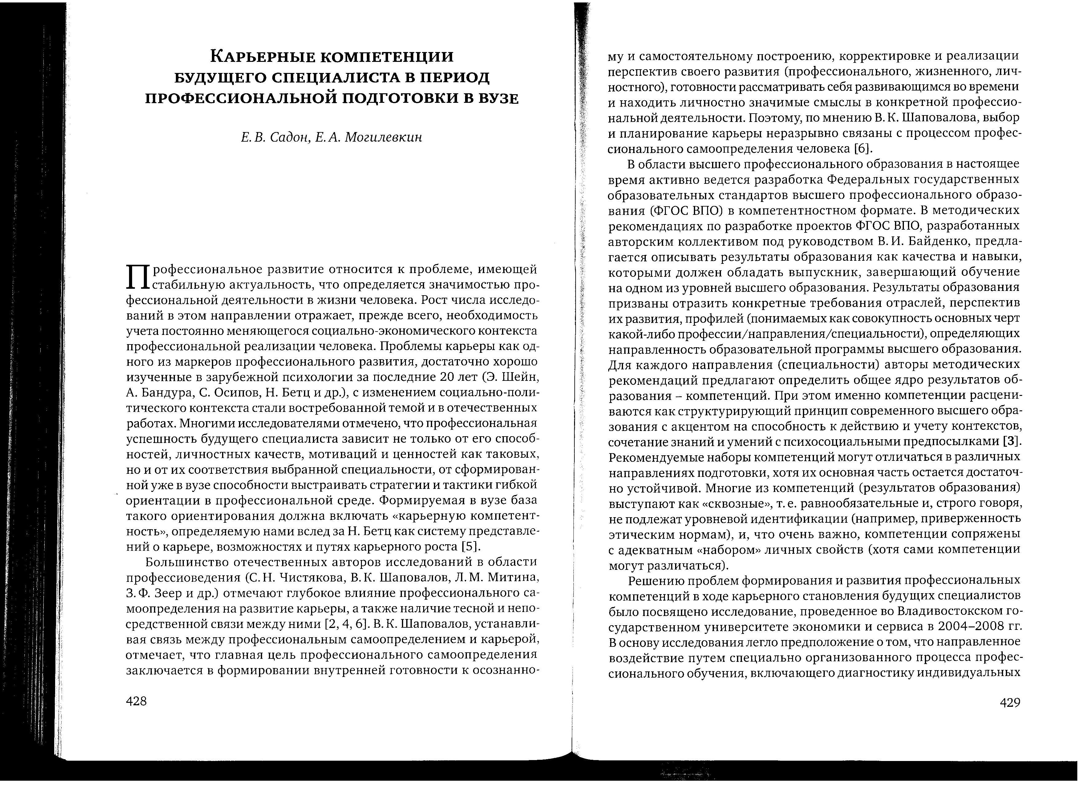 Карьерные компетенции будущего специалиста в период профессиональной подготовки в вузе